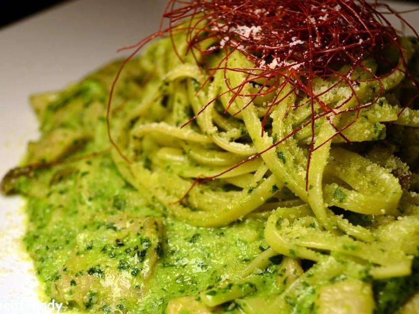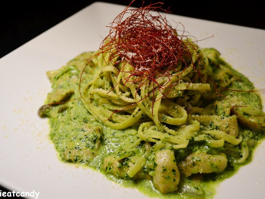 小肥肉想要吃麵,我就點了份白青醬松阪豬細扁義大利麵,利用松子及羅勒絞碎製作而成的青醬,吃得出來是手工醬汁,搭配油脂豐富的松阪豬,口感有嚼勁,平常家裡就喜歡買松阪豬來料理,所以超級滿意這道菜。上層佐以辣椒絲提升層次感,這一道我順順利利的完食。
