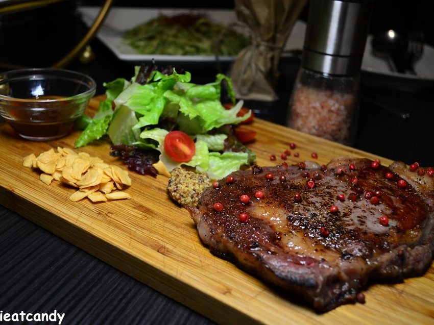 嗜肉如命的老公選擇16oz嫩煎prime安格斯肋眼牛排,老公很難得對牛排滿意,即使他是多高檔的餐廳,這次意外地聽到他主動稱讚這家店的牛排,肉質剛剛好,粉嫩色中充滿juicy,小肥肉也吃得很滿足~(天啊!喜歡的東西都跟老公一模一樣,以後老公想吃甚麼都得分一半了)