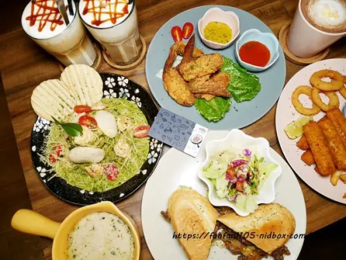 *店內餐點包括:湯品、輕夏沙拉、帕尼尼吐司系列、軟法麵包系列、義大利麵、炸物、甜點、酒類飲品、咖啡、茶與可可、水果茶、鮮果泥果汁&氣泡飲、軟性飲料