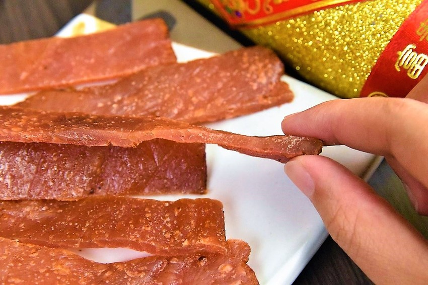 蜜汁肉乾↑厚度適中,嚼勁十足,蜜汁肉乾的聞起來不會有油膩感,香甜的味道整個就讓人很想趕緊拆開它把蜜汁肉乾送進五臟廟~拿在手上吃完還會有殘餘的豬肉乾甜甜的味道,讓人忍不住想偷偷吸一下手指,把這個送給朋友,讓大家一起呷滴滴,好過年~