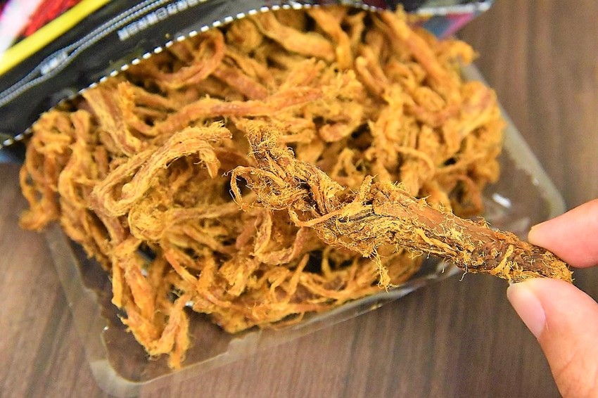 一撕開夾鏈袋,日曬的香味及肉絲本身的香味就擴散出來~嚼越久越香~整包份量十足一整包滿滿的,裡面有塑膠盤,可以直接拉出來食用覺得很方便呢!
