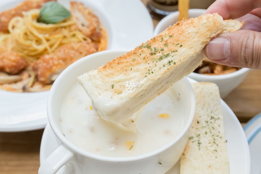 這麵包沾著濃湯,對我個人口味而言,相當對味。