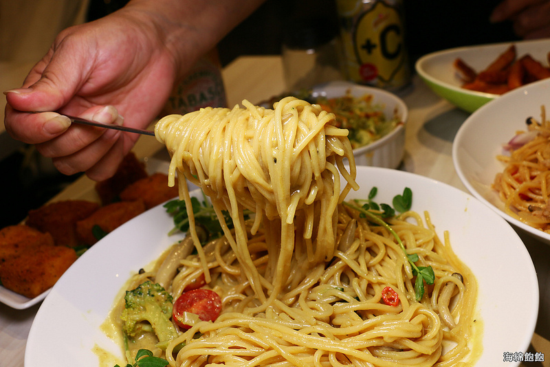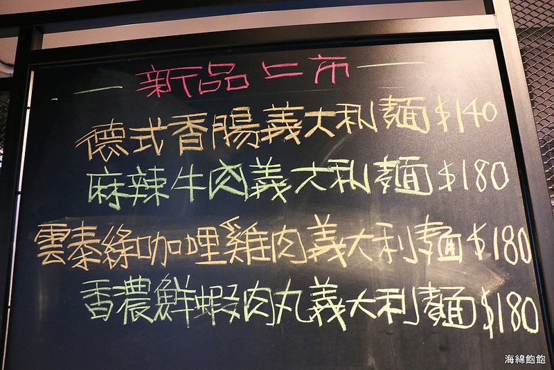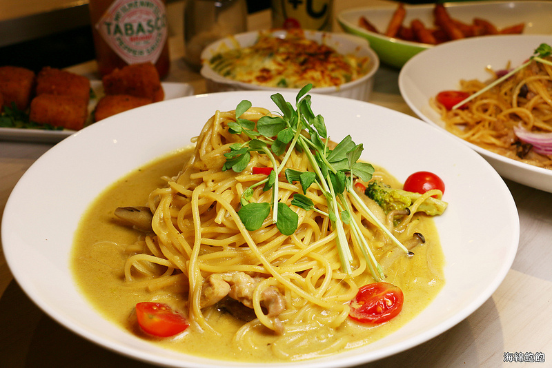 最近推出新品,麻辣、綠咖哩、粉紅醬義大利麵~