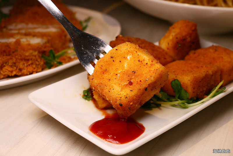 使用滑嫩的雞蛋豆腐,外皮酥香