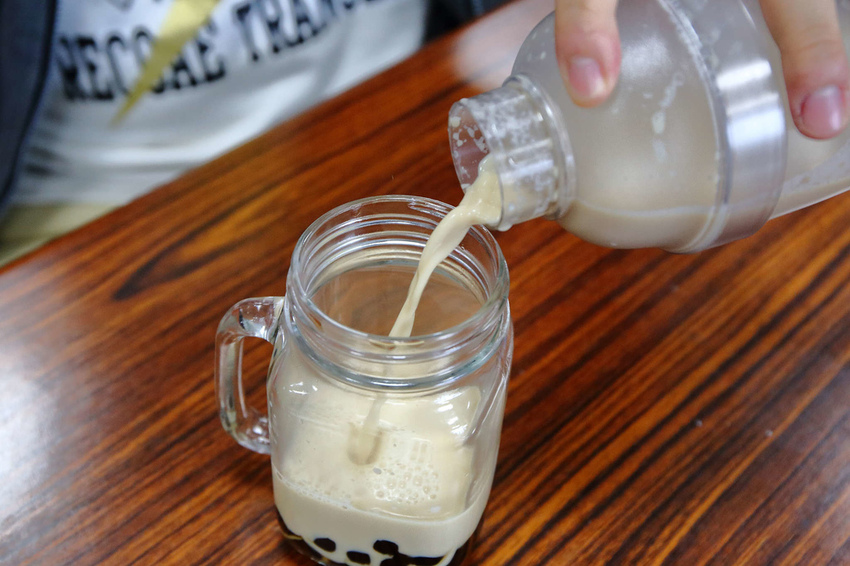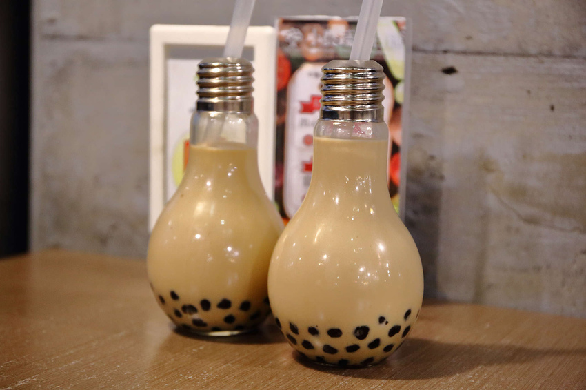 而它們家最吸引人的就是可以免費無限量喝的燈泡珍珠奶茶,外面一杯珍珠奶茶至少45元咧,