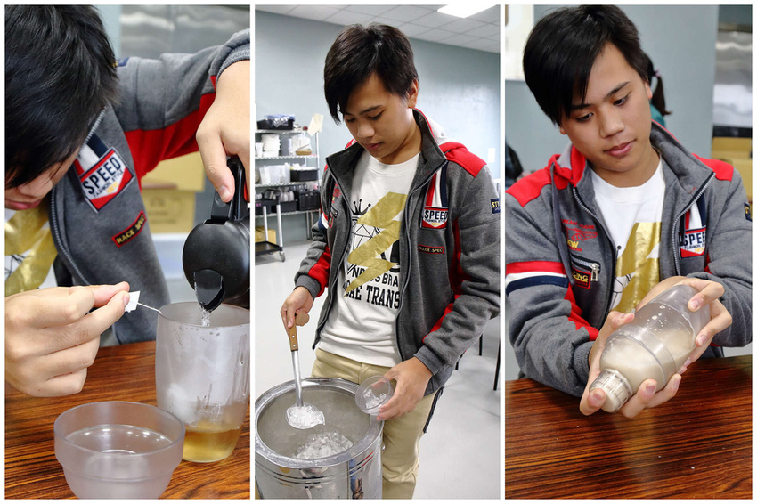 ►再加入冰塊蓋上雪克杯的蓋子後,開始搖晃
