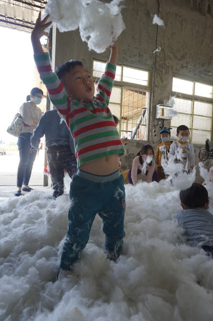 繼續棉花海的遊戲~像球池的概念嗎?差別是穿棉質的衣服非常會黏棉絮喔~愛注意