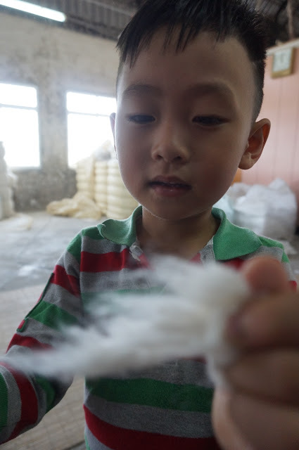 一來到棉被工廠,就看到棉花海~軟軟的棉花~屎蛋看到立馬跳起彩球舞~