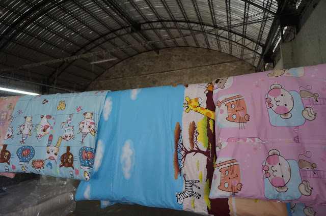 準備把舖好的棉被穿衣服囉!棉被的被套也是純棉的喔~品質有保証,摸起來好舒服喔!