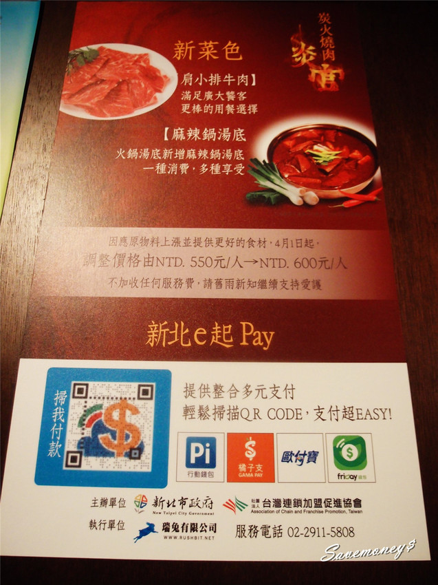 這張海報除了說明新推出的菜色有肩小排牛肉,還有重口味的麻辣鍋湯底