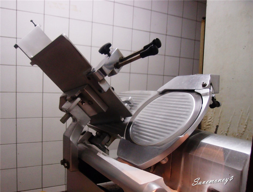 櫃台旁邊有個小窗口,剛好可以拍到廚房內的切肉機