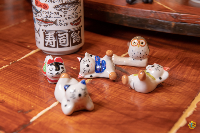 店內有很多可愛動物造型的筷架,每個模樣都逗趣生動。