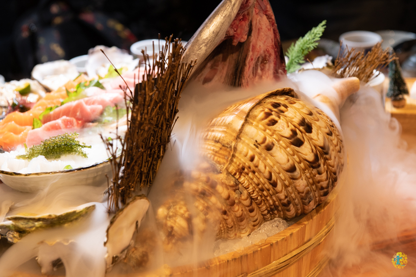 一整盤超澎派的海味,有挪威鮭魚、澎湖紅甘、軟絲、海葡萄、生蠔,中間是黑鮪魚。來自大海的鮮甜,入口即化的口感,徹底寵壞味蕾。