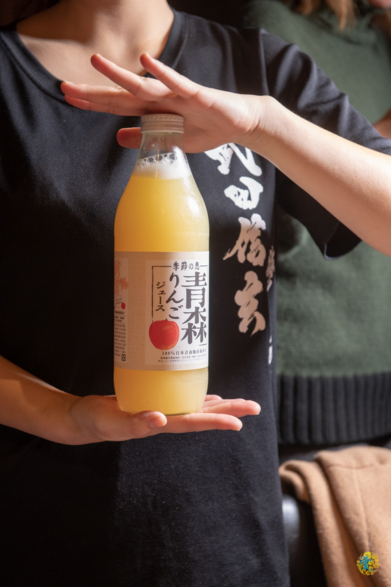 產自青森的蘋果原汁,喝之前需要先搖均勻,滋味鮮香甜美,很好喝。