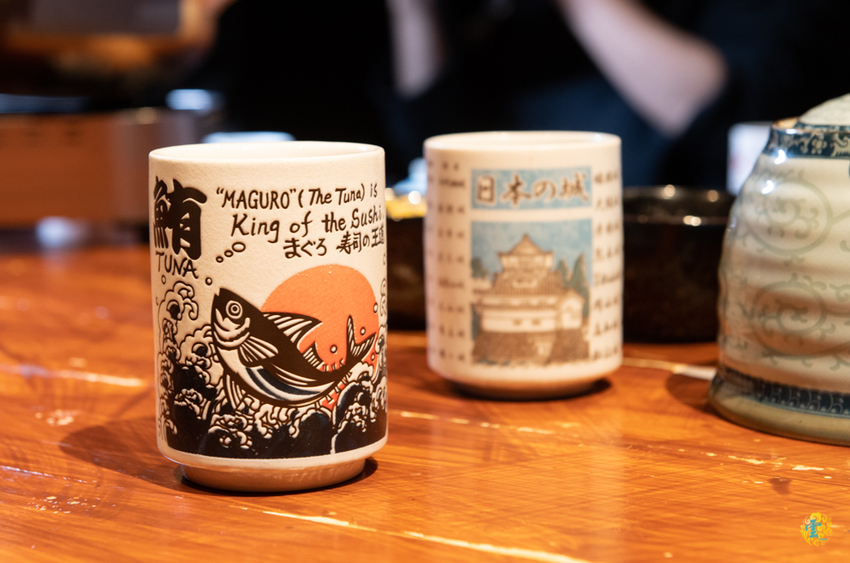 武田信玄提供無限量的決明子麥茶,可以開胃解膩,店內的每一個茶杯都有他獨特的花紋圖案。