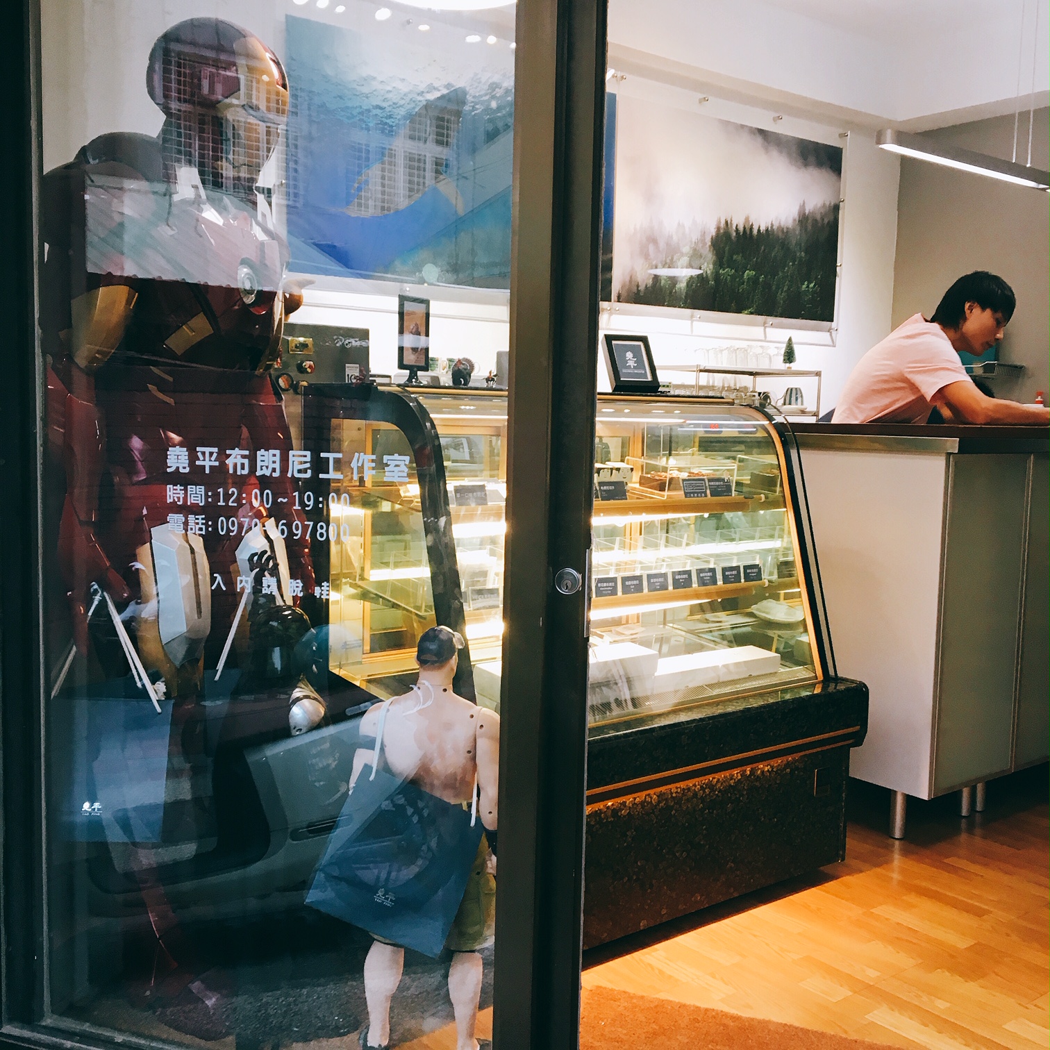 堯平店面其實蠻小間的,也沒有華麗更過多的裝飾品,整體感覺走簡潔明亮風格,店內要脫鞋才可進入。店內整體空間不大,牆上掛著相片,還有櫃子擺著很多老闆收集的公仔。進入店內後,親切的老闆會提供一小塊布朗尼試吃,坐在靠窗的板凳慢慢品嘗香濃的布朗尼,這個下午茶蠻幸福的~