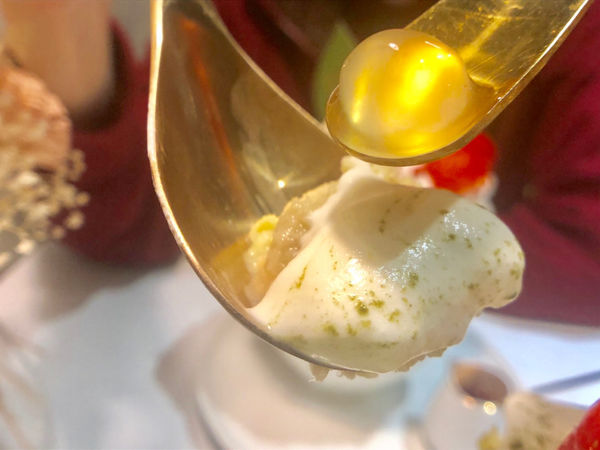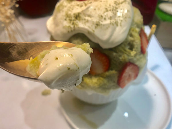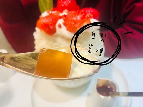 刨冰好有創意,上面淋上自製牛奶糖淋醬,味道香濃,搭配當季的水果大湖草莓,還有自製草莓果醬,最後在鋪上厚厚的鮮奶油,