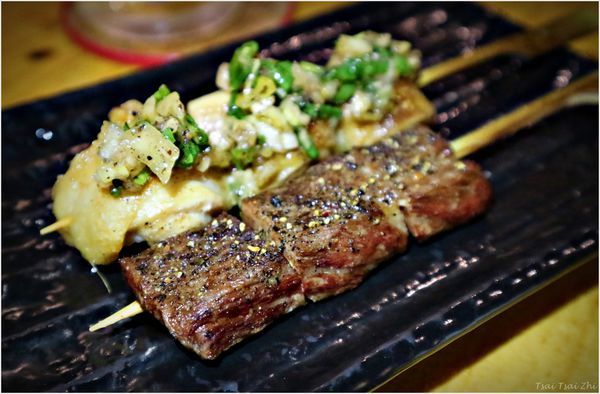 酌燒的串燒吃起來稍微油膩,肉質的部分雞肉跟牛肉烤的都還OK,