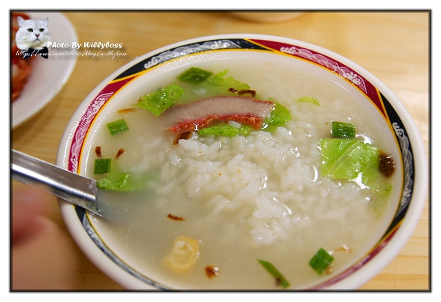 Alice和歌神點了鹹粥20元,大骨熬的湯頭口味清淡了些,加上些許青菜和一片紅燒肉,吃起來像湯泡飯;口味感覺比較沒啥特別之處,讓人覺得與其說是吃粥配小菜,不如說是吃小菜配粥......主角配角角色都逆轉了啊!還是店名要改叫老艋舺紅燒肉XD?