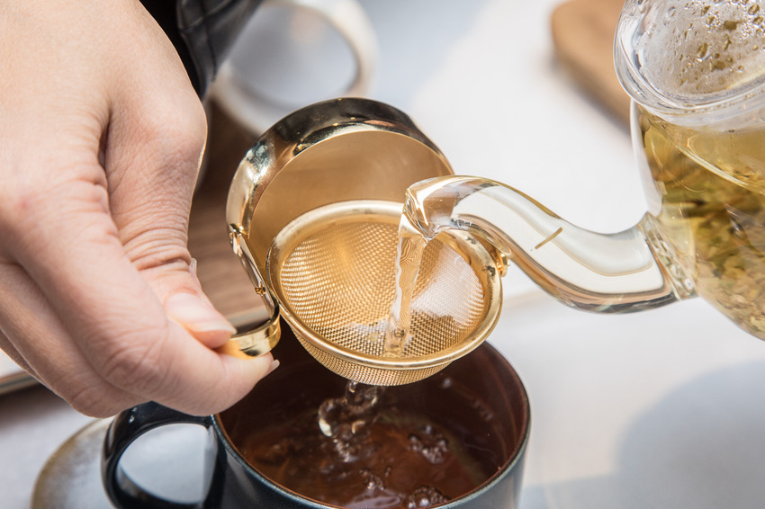 這菩提蜜香 椴木花葉茶一上桌,吸引咬咬第一眼目光的就是這金光閃閃的茶具,喝的是後將這茶具當成濾網,下面的盤子是活動的,倒完茶時,多餘的茶湯便會滴在盤中,不會滴的到處都是,相當有巧思又有質感的小茶具