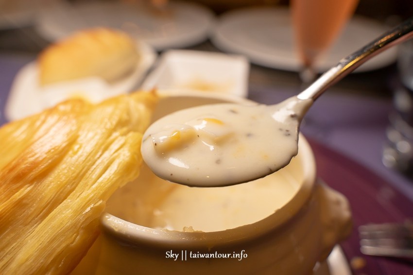 酥皮海鮮濃湯,Sky最喜歡上面的螺旋酥皮,