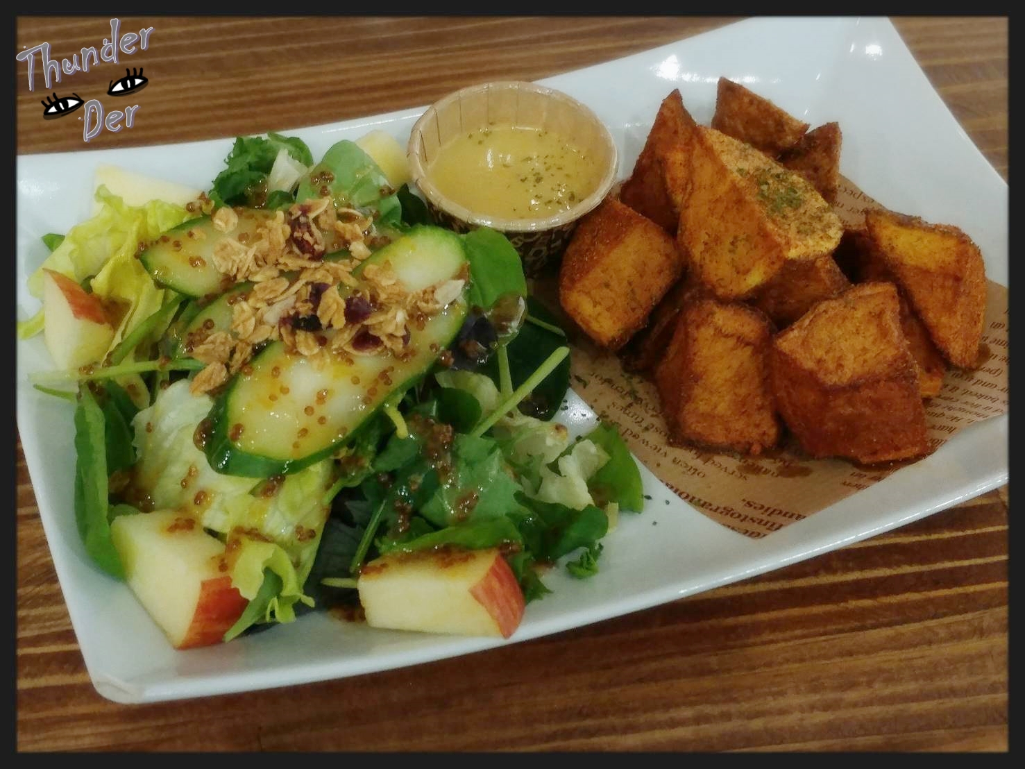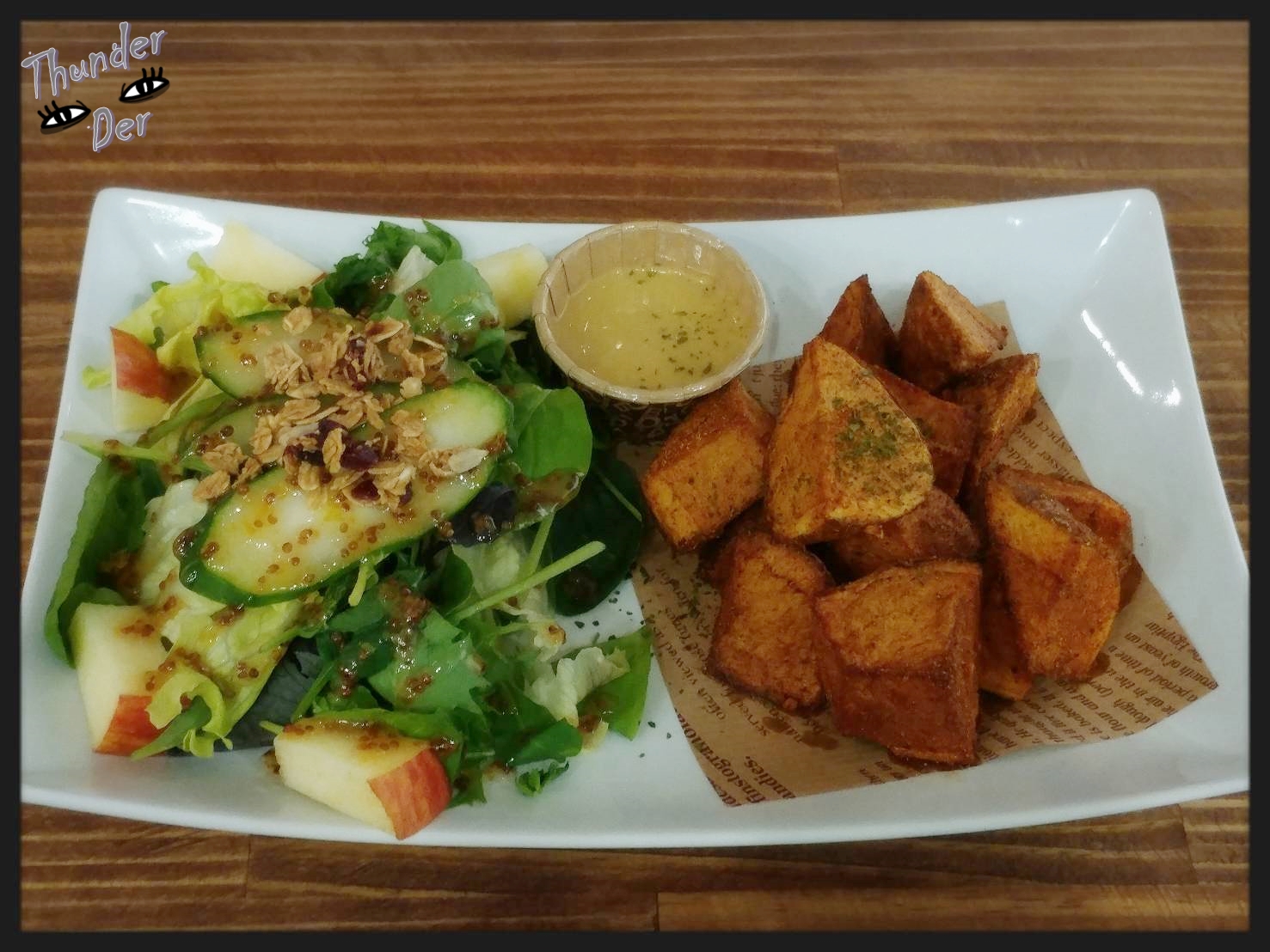 再來介紹厲害的首圖,如果不說這是加價升級套餐SET的主廚沙拉&美式薯塊+65元