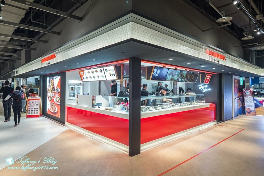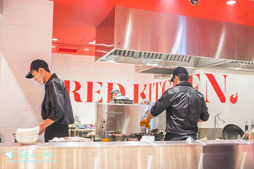 紅白色系的裝潢讓金葉紅廚在微風南山B2美食街裡看起來就很亮眼
