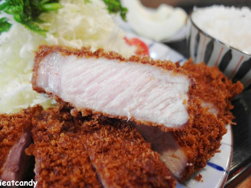 約莫兩指厚的豬里肌炸出來的粉比普通看到的深色一點,那咬下去的酥脆口感真的是很難能可見。外酥內厚實的肉質帶點些許油脂部分,讓整個吃起來不會這麼柴,吃三塊我就挺飽了…