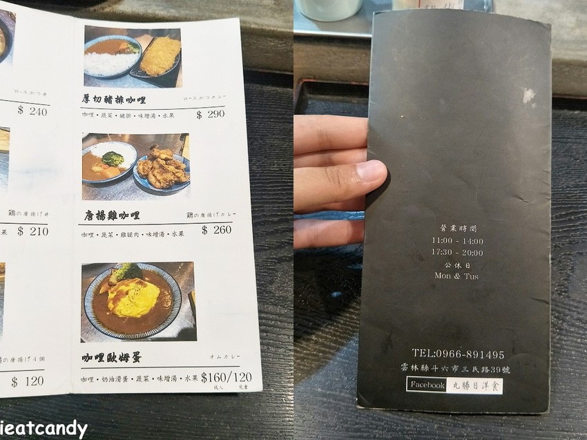 丸勝日洋食菜單:菜單放在位置後方的掛袋上,直接跟店家點餐即可。價格來說,算是中等價位,提供味噌湯、白飯、小菜、水果,都能無限續喝,很不錯。