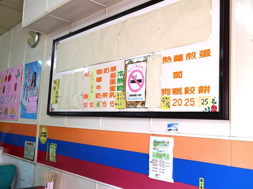 店裡賣的東西很簡單:蛋餅、煎餃、蘿蔔糕、熱狗、飲料…