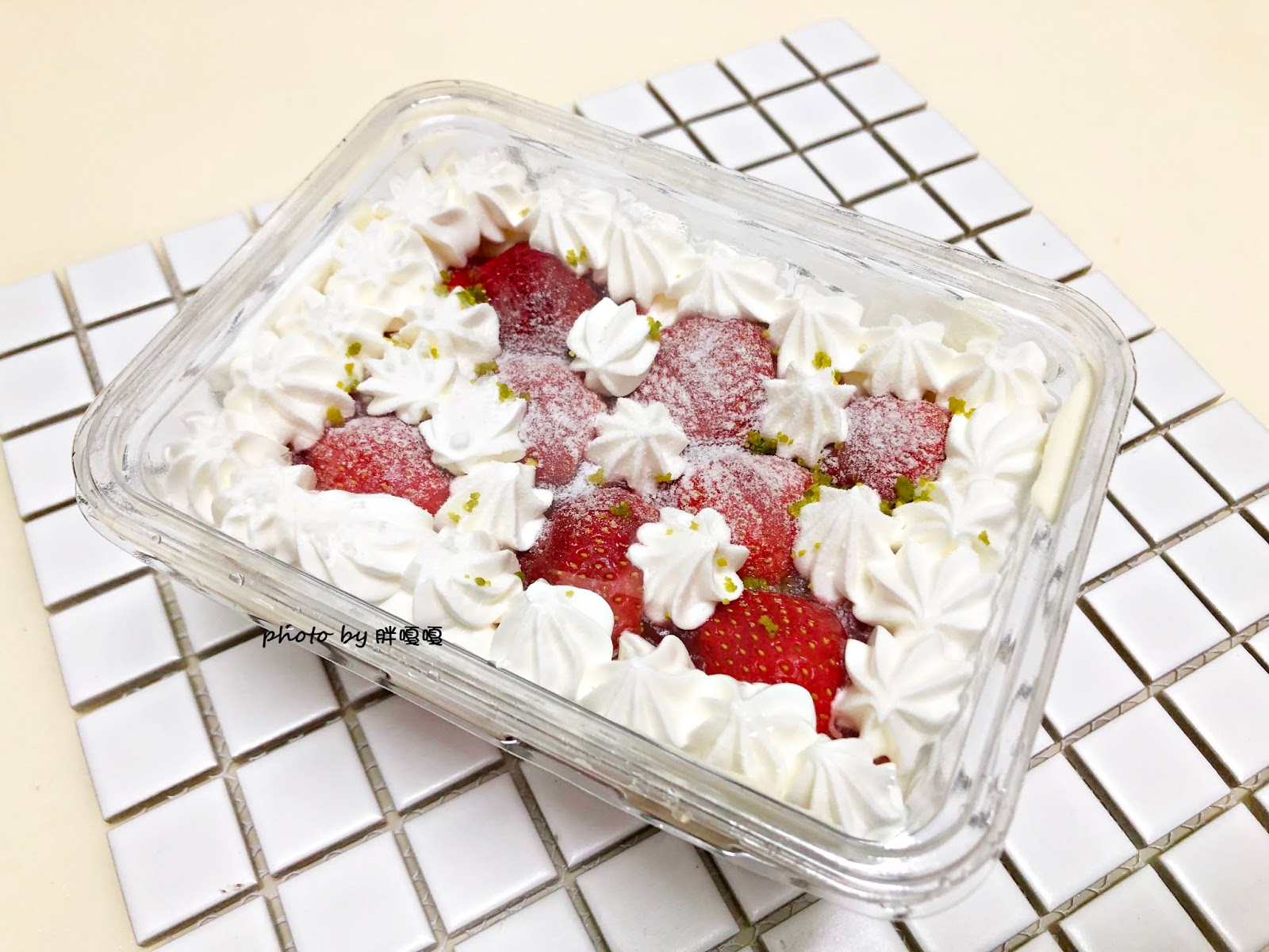 側邊可以看見草莓剖面、卡式達醬及鮮奶油