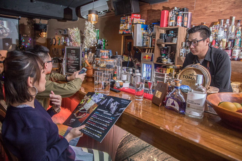 已經是第二次來了,這次就不著墨太多在Mix Bistro的門面了->點我看Mix Bistro的所在地,走上樓梯就可以聽見店內傳來許多客人聊天及輕鬆的音樂聲,用餐環境與初訪並沒有太大的改變,倒是感覺似乎熟客變多了,大家都知道Mix Bistro可以客製化,不少人都已經不看酒單來點酒了