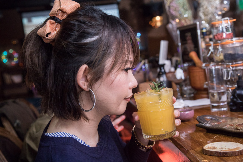 如果沒有親眼看到這杯辣調酒的製作過程,我真的以為眼前這杯應該是熱帶果汁之類的調酒,橘紅色調很有夏日風情,但看過製作過程,感覺這杯好像是什麼黑暗料理之類的....