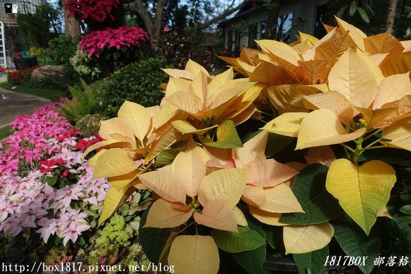 進入聖誕紅造景花園,就像走入歐風油畫花園般,色彩絢麗又浪漫,