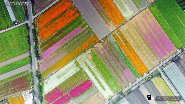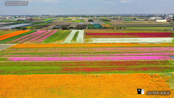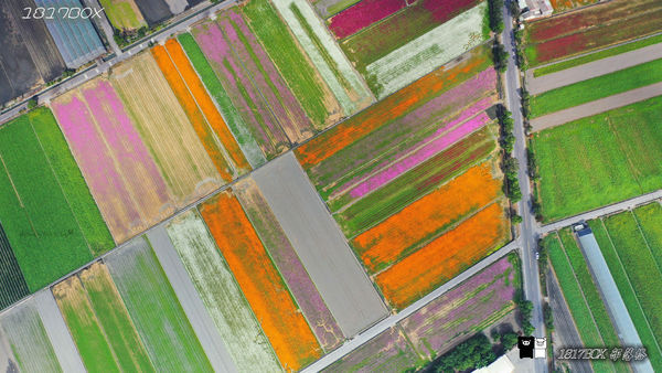 首先,讓我們透過空拍鏡頭,來看看今年雲林莿桐孩沙里的30公頃彩色花毯,
