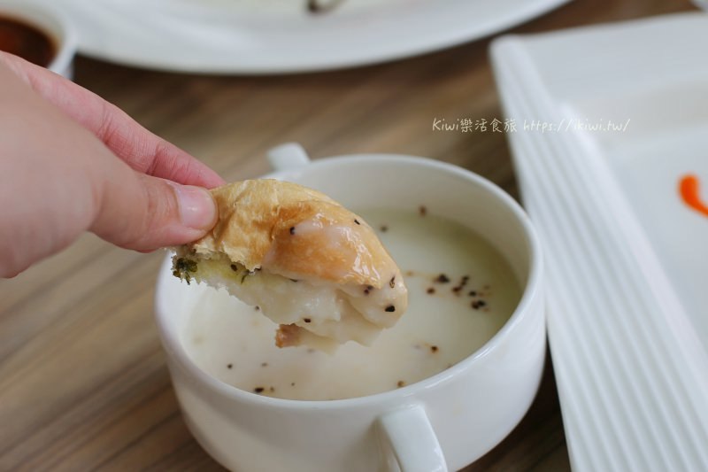 海鮮南瓜起司濃湯也很超值,最誇張的是海鮮好多,起司融合在濃湯裡,南瓜與海鮮的鮮甜味可是非常迷人的,吃到這裡都已經飽一半了。