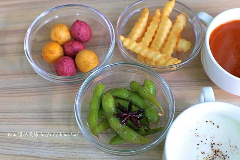等待餐點之餘,就可以到免費的自助Bar來取毛豆、炸物,不定期地推陳出新,偶爾來用餐就能有個小驚喜。