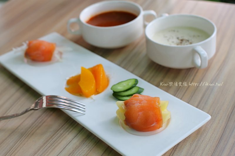 爽口的煙燻鮭魚包覆著蘋果,就連包洋蔥也是如此的迷人,清新淡雅的香氣逐漸蔓延開來,開胃菜挑起了我們的味蕾。