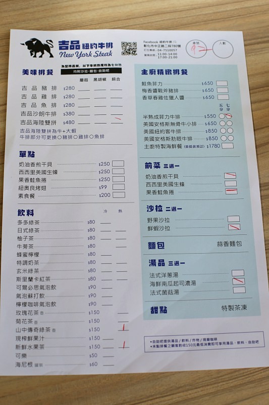 彰化吉品紐約牛排餐廳菜單