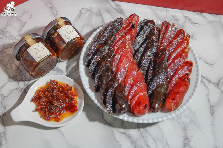 兩款手工特製招牌肝腸、臘腸,搭配超夯的XO干貝醬