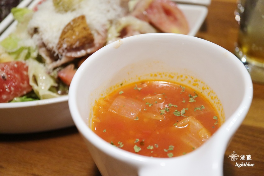 香料蕃茄蔬菜清湯兩杯,喝得到洋蔥、高麗菜的甜味,還有蕃茄的酸、濃郁的香料氣息