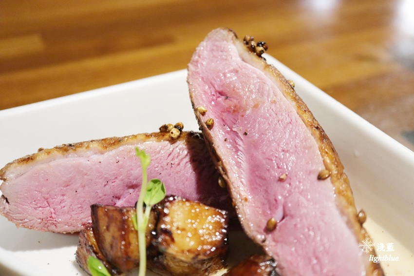 鴨胸香煎約七分熟,雖然看起來還有一點血水,不過入口時會覺得這樣的熟度剛剛好,再熟一點就會太老而乾柴了