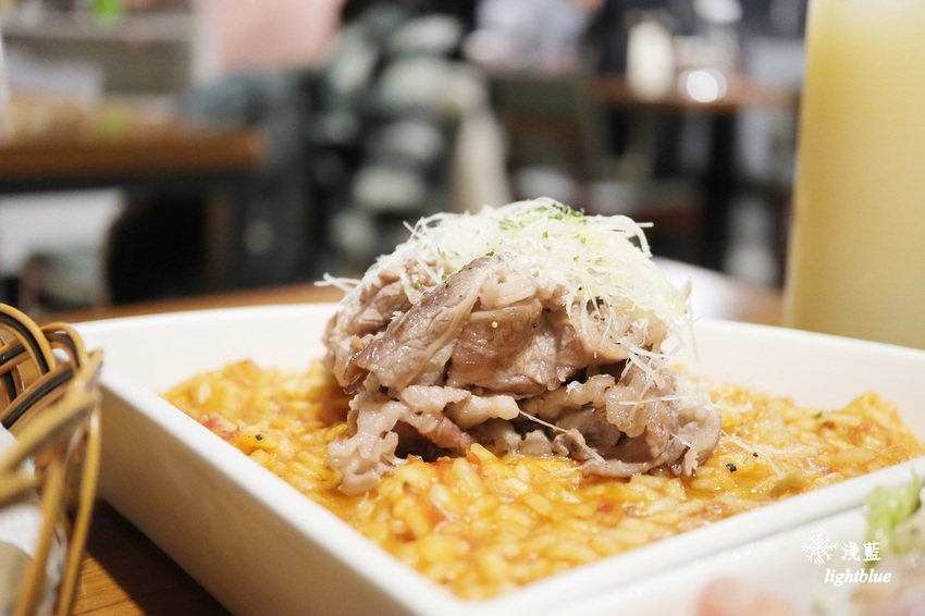 飯麵類我選「牛五花蕃茄奶油野菇燉飯」,店家使用義大利米,會煮成米心較硬的口感,但不會到不習慣的程度,蕃茄的酸讓奶油燉飯不那樣膩口