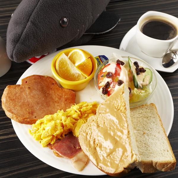 厚達0.8公分的羅浮火腿,搭配抹上花生醬或是奶油的手作厚切吐司,加上美式炒蛋、生菜沙拉,還有一小碟水果,帶給你濃郁德式風味的精緻早餐。