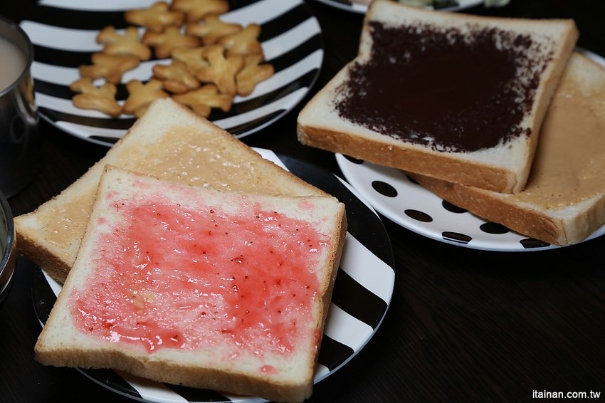 吐司的部分提供三種果醬可自行Diy。