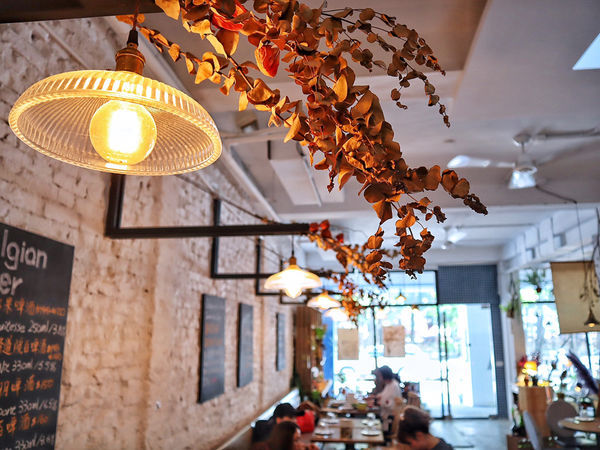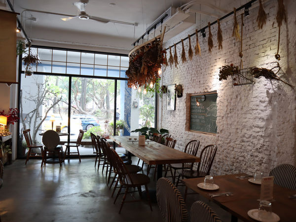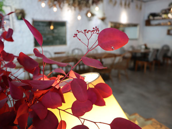 工業風刷白的牆面、隨處可及的乾燥花、特殊設計的燈管照明,特別有質感。