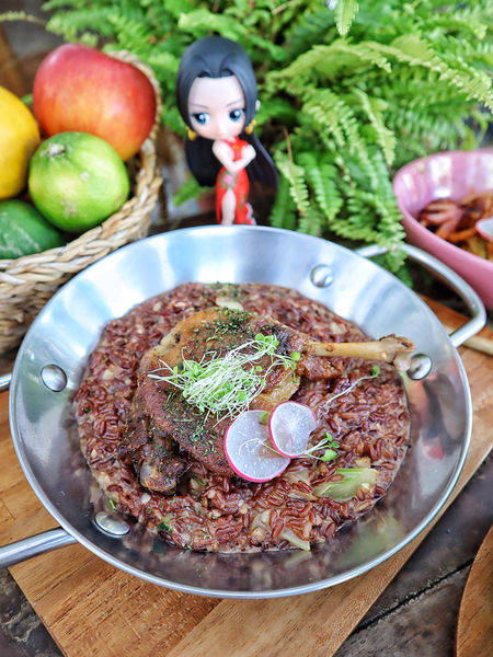 ▫️燉飯的部分有三種選擇:義大利米、黑米、紅米。當天選擇較少見的紅米,店員貼心提醒紅米保留較多未被輾磨的表殼,會較需咀嚼,當天吃的感覺大概是糙米飯程度,加入起士跟櫛瓜搭配,濕潤度夠也有Q度,香氣十足,還有點綴加入酸甜番茄干讓口感更有層次。另外,紅米保留的營養素更甚,豐富蛋白質、礦物質、維他命B等,纖維量也是白米兩倍,貧血的女孩們推薦吃這個哦!