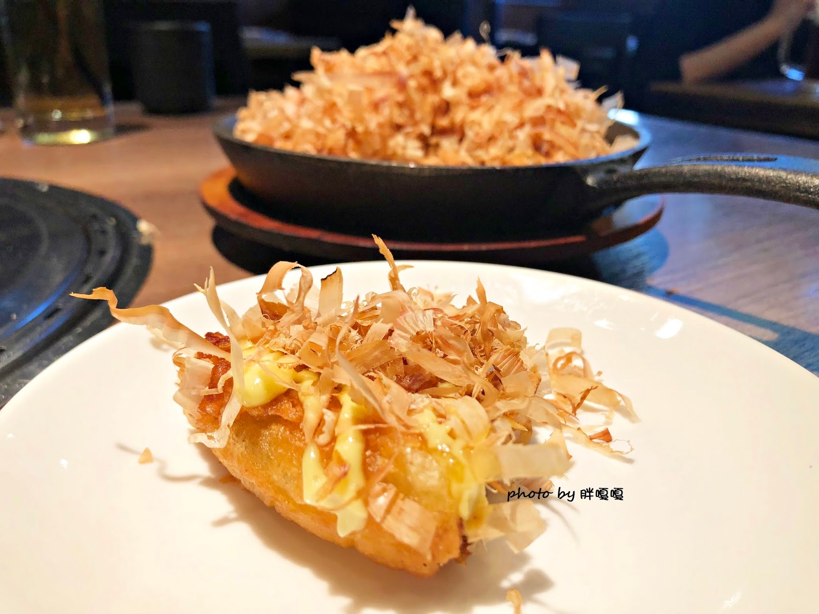 甫上桌的海鮮煎餅上頭有跳舞柴魚片