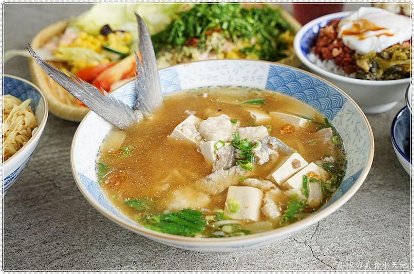整尾魚都跳入味噌湯頭裡??豆腐浮出水面、天空飄下蔥末點綴了這一道浮誇美食