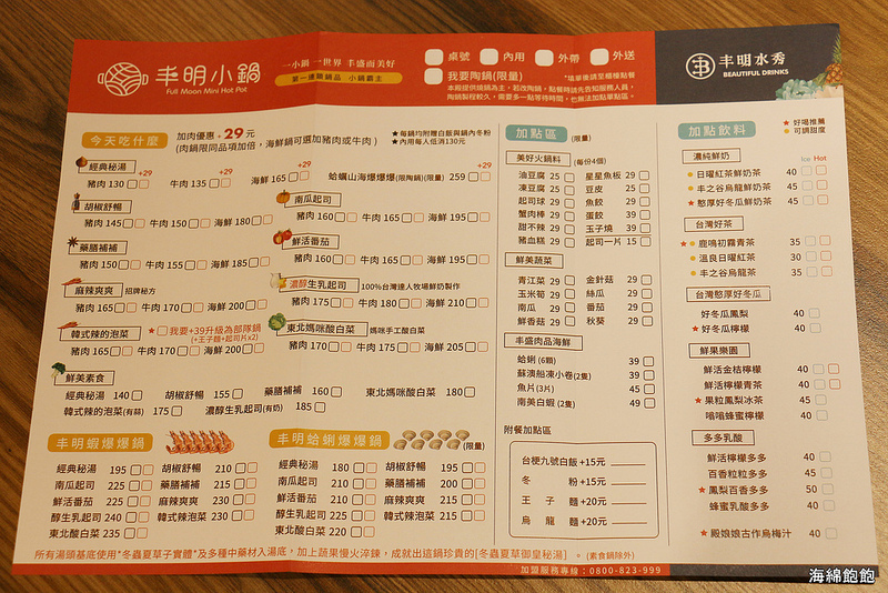 士林芝山火鍋『丰明小鍋/丰明水秀』最文青小鍋霸主開箱文,每鍋130元起!蛤蠣山海爆爆鍋,最強牛乳起司鍋,手搖杯飲料,IG網美打卡牆,參考菜單(捷運芝山站)